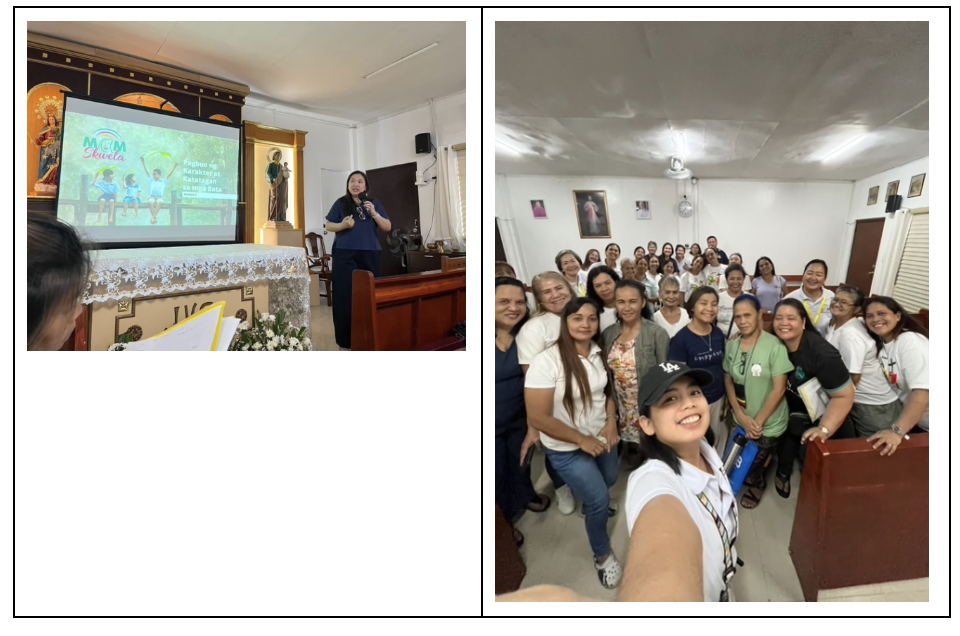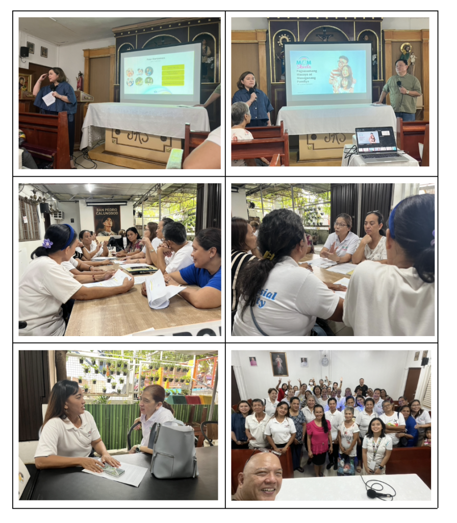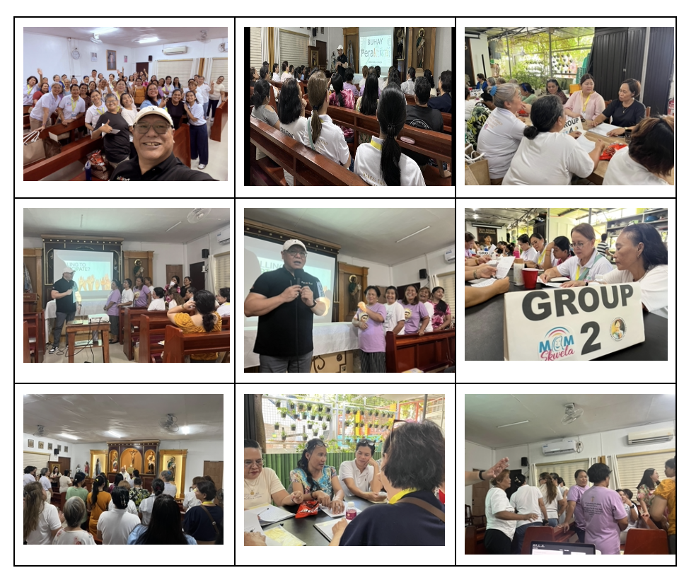 The MomSkwela Program was implemented with the first batch of parish partnership with San Pedro Calungsod–Quasi Parish in Poblacion, Muntinlupa, with the aim of empowering mothers through a holistic and values-based formation process. Designed to address personal growth, financial responsibility, parenting, cheerful homes and spousal relationships, the program comprises five research-based content in five modules. Each module progressively builds on knowledge, skills and values in real-life contexts.